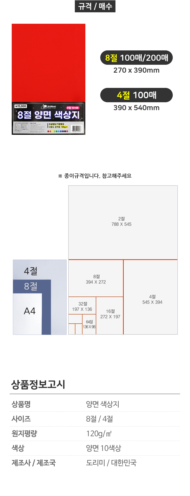 도리미 양면 색상지 8절 10색 200매 120g 요약정보 및 구매