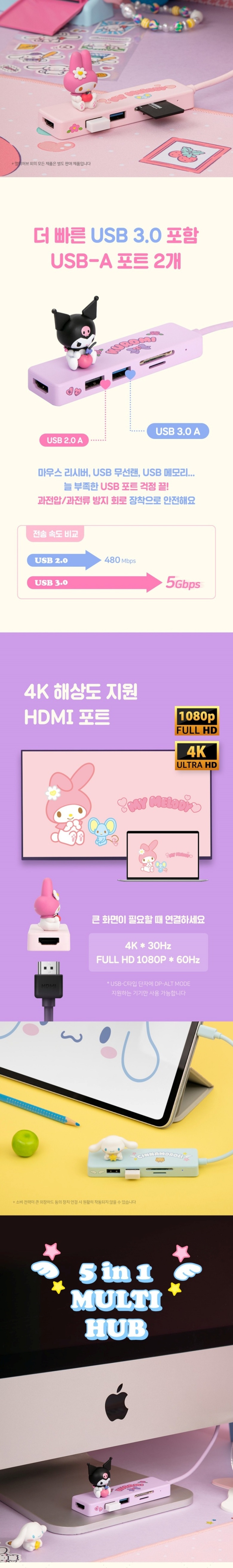 • 39900 산리오 멀티허브 쿠로미 USB C타입 5in1