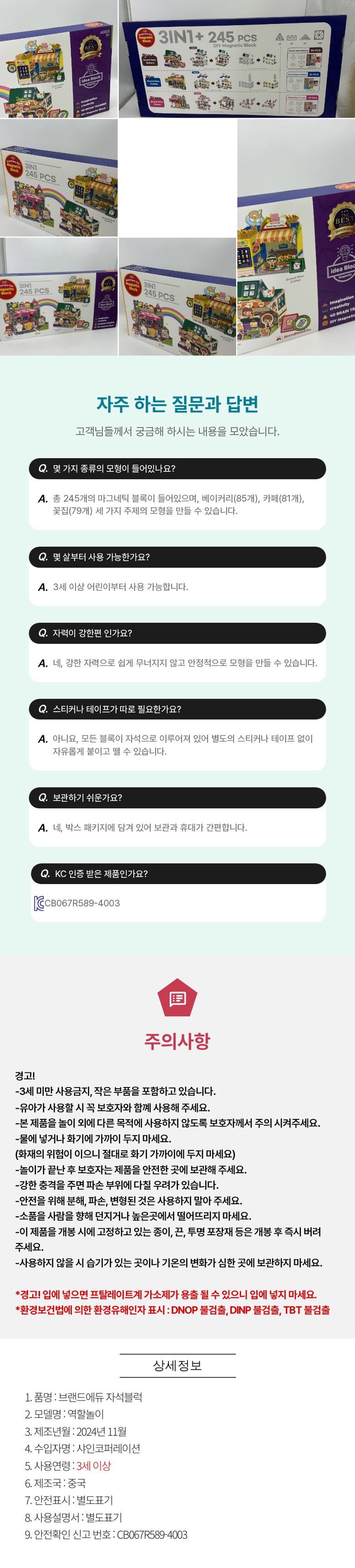 375000 브랜드 에듀 자석 블럭 245P 요약정보 및 구매
