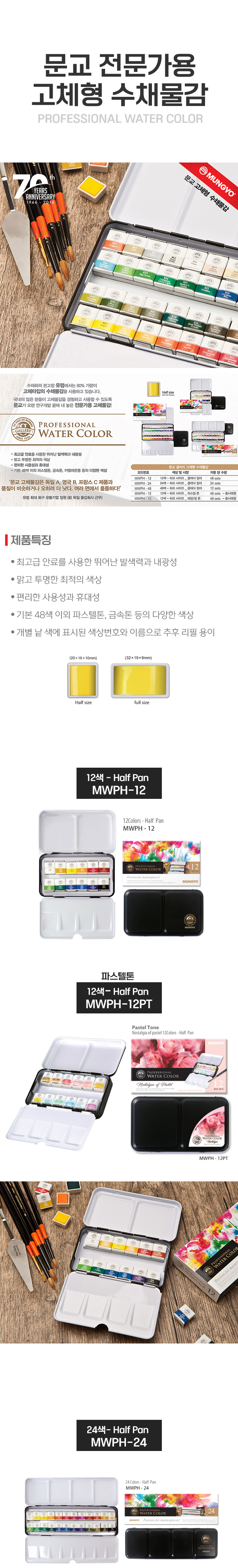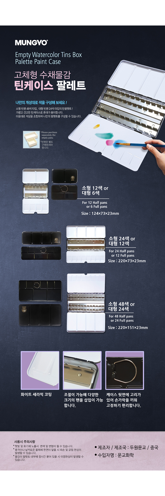 문교 전문가용 수채화 고체물감 24색 + 빈 틴케이스 팔레트 24색 MEWT-24 세트 요약정보 및 구매