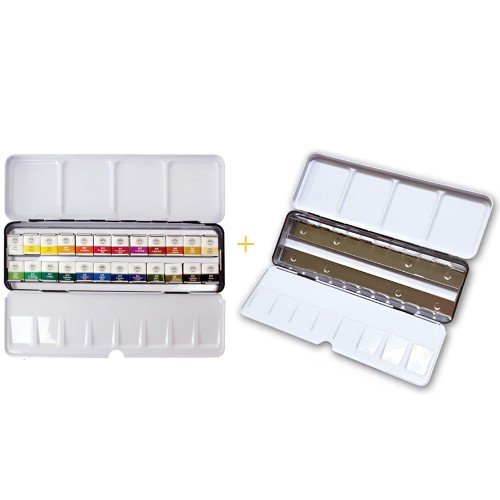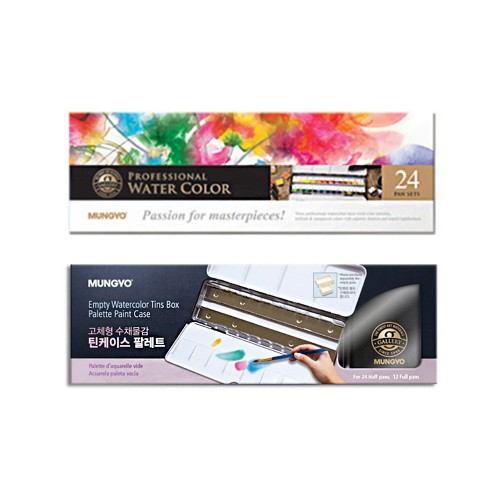 문교 전문가용 수채화 고체물감 24색 + 빈 틴케이스 팔레트 24색 MEWT-24 세트 > 수채화물감