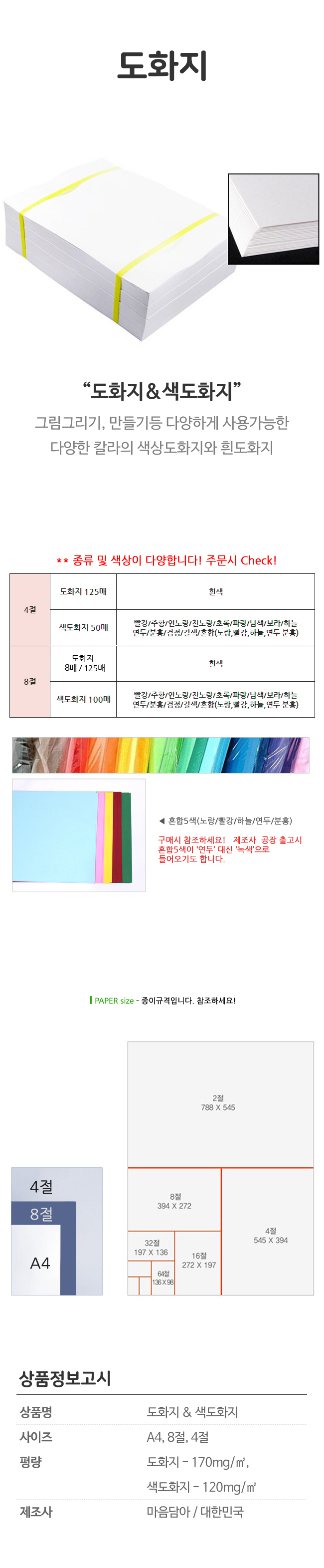 8절 도화지 8매 흰색 > 켄트지/도화지