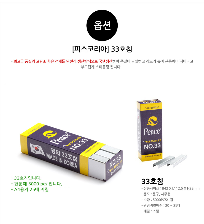 피스코리아 스테플러침 33호침 5개(낱개) 요약정보 및 구매