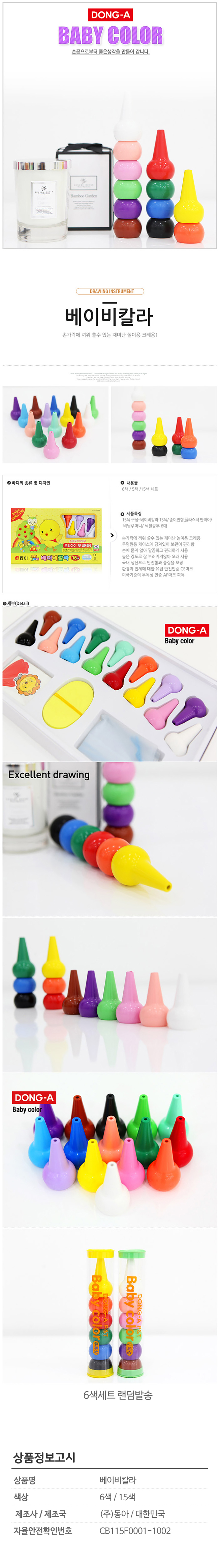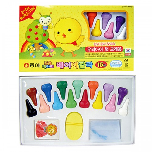 동아 노랑병아리 베이비칼라 15색세트 크레용 색칠 > 크레파스