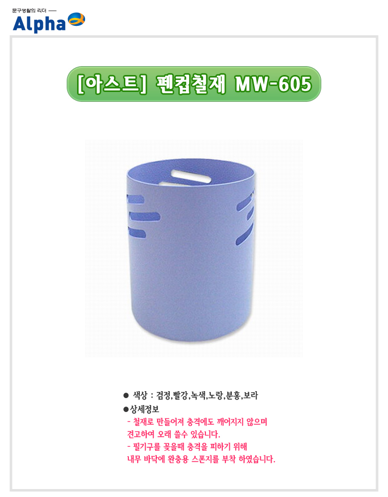 아스트 펜컵 철재 MW-605 연필꽂이 펜꽂이 색상랜덤 > 연필꽂이