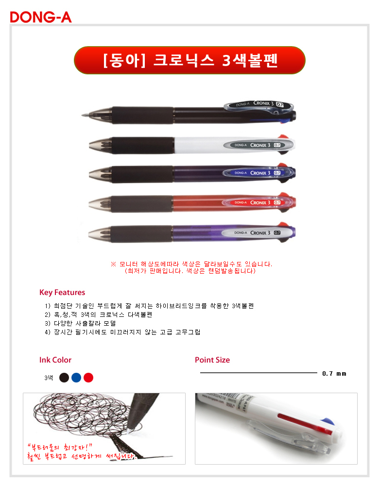 [동아] 크로닉스 3색볼펜 0.7mm 랜덤 요약정보 및 구매