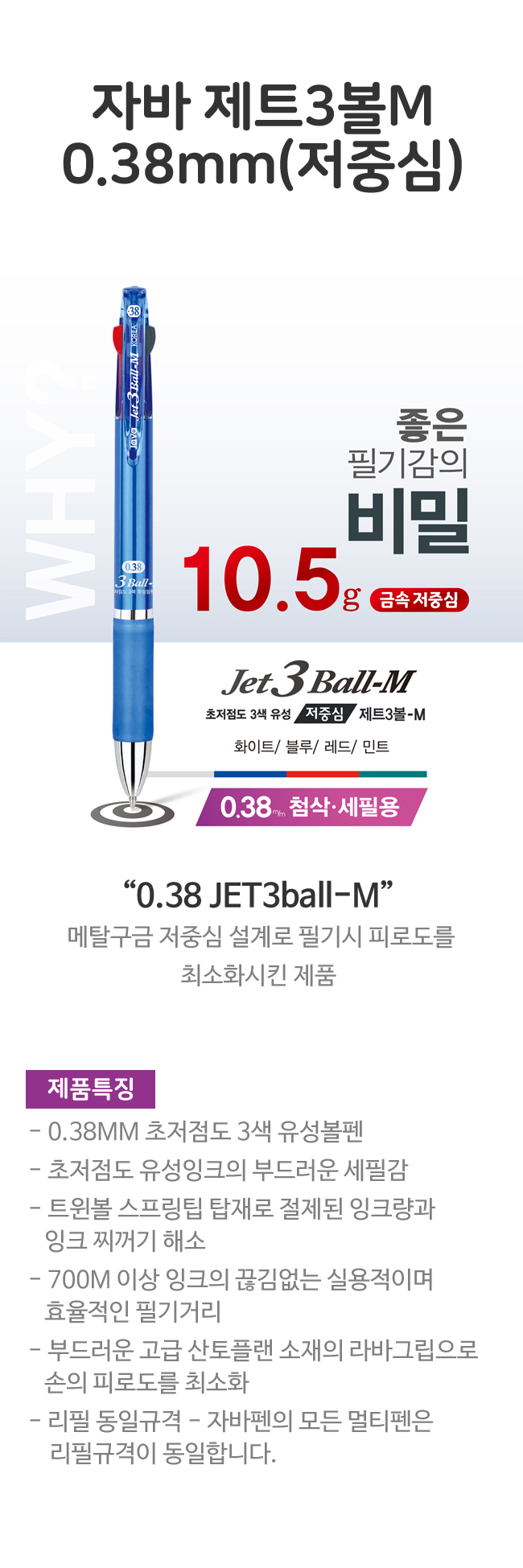 • 자바 제트3볼M 0.38mm 저중심 볼펜