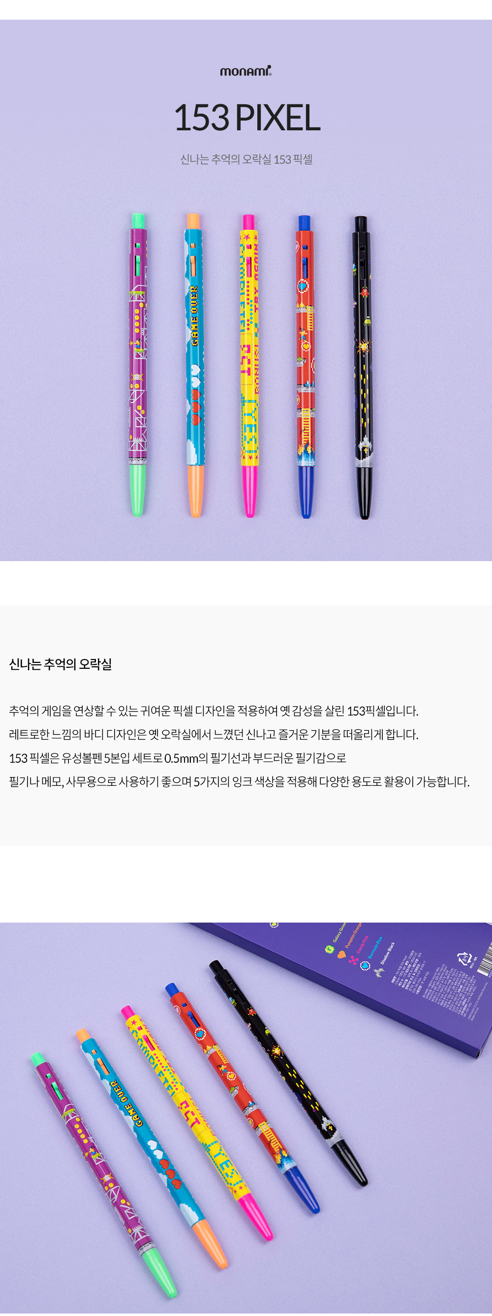 모나미 153 픽셀 유성볼펜 0.5mm 5입 세트 요약정보 및 구매