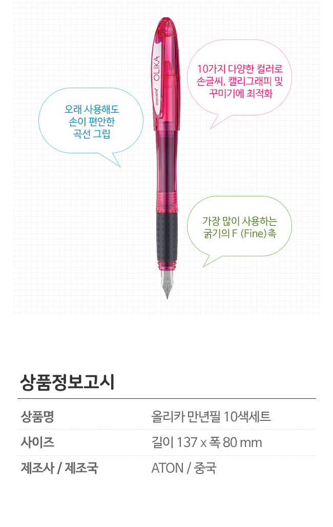 모나미 올리카 만년필 10색 세트 요약정보 및 구매