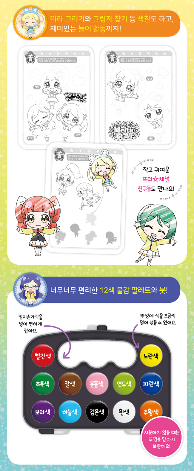 반짝이는 프리채널 12색 물감색칠 팔레트 세트 > 색칠공부
