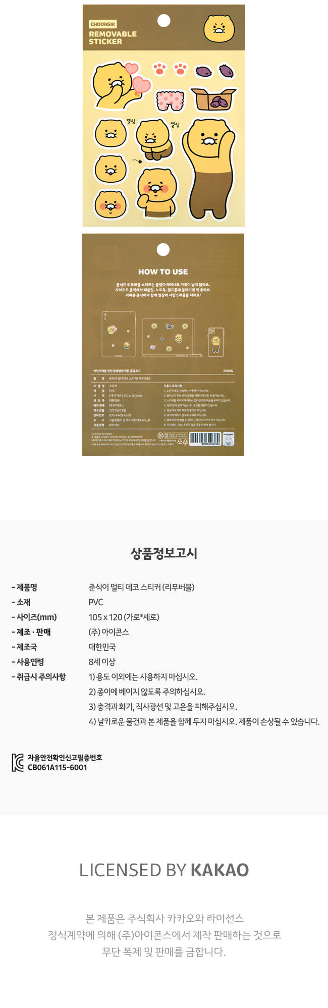 춘식이 리무버블 멀티 데코 스티커 요약정보 및 구매