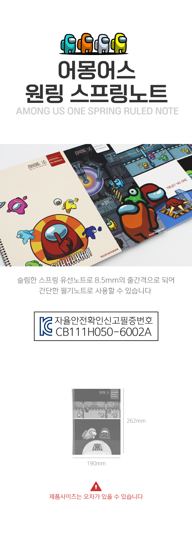 어몽어스 원링노트 스프링 유선 8.5mm > 스프링노트