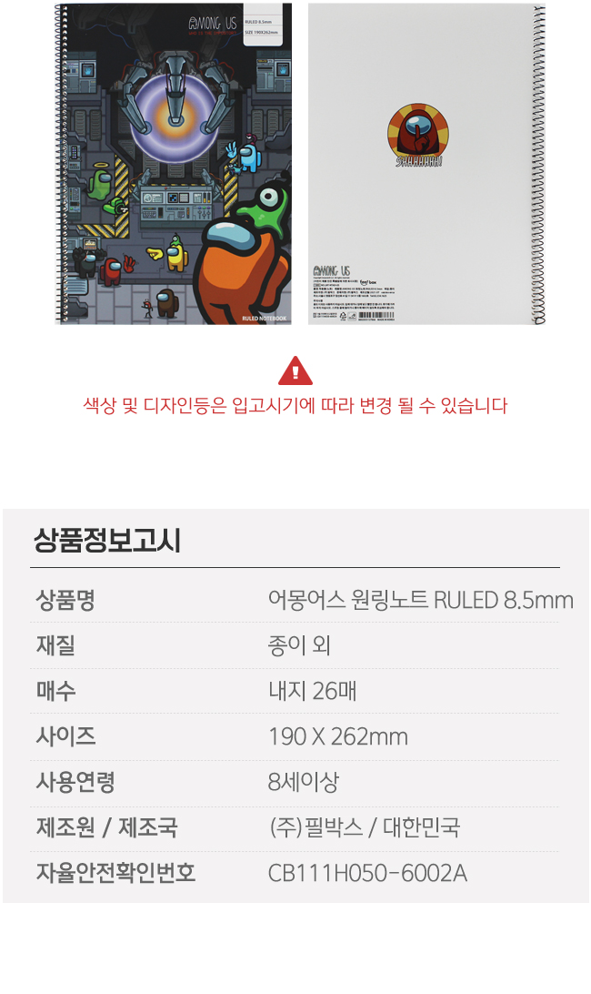 어몽어스 원링노트 스프링 유선 8.5mm 요약정보 및 구매