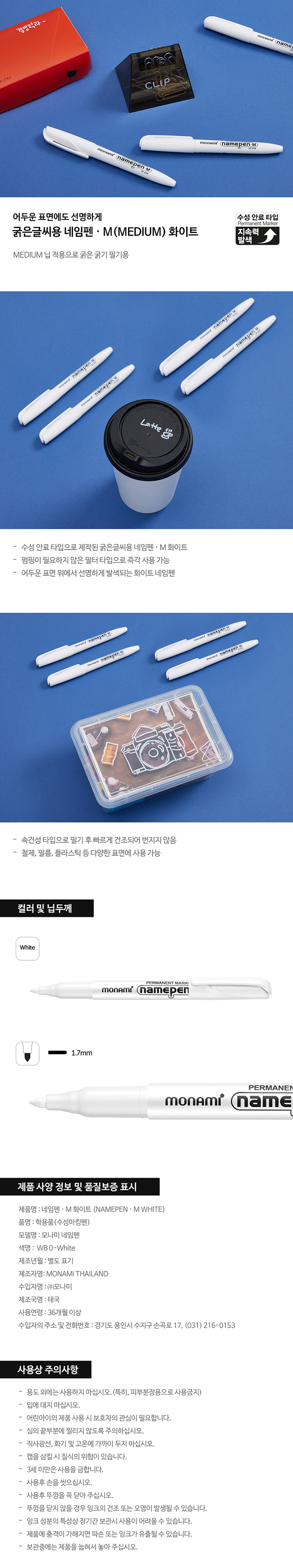 모나미 네임펜 M 화이트 굵은글씨용 요약정보 및 구매