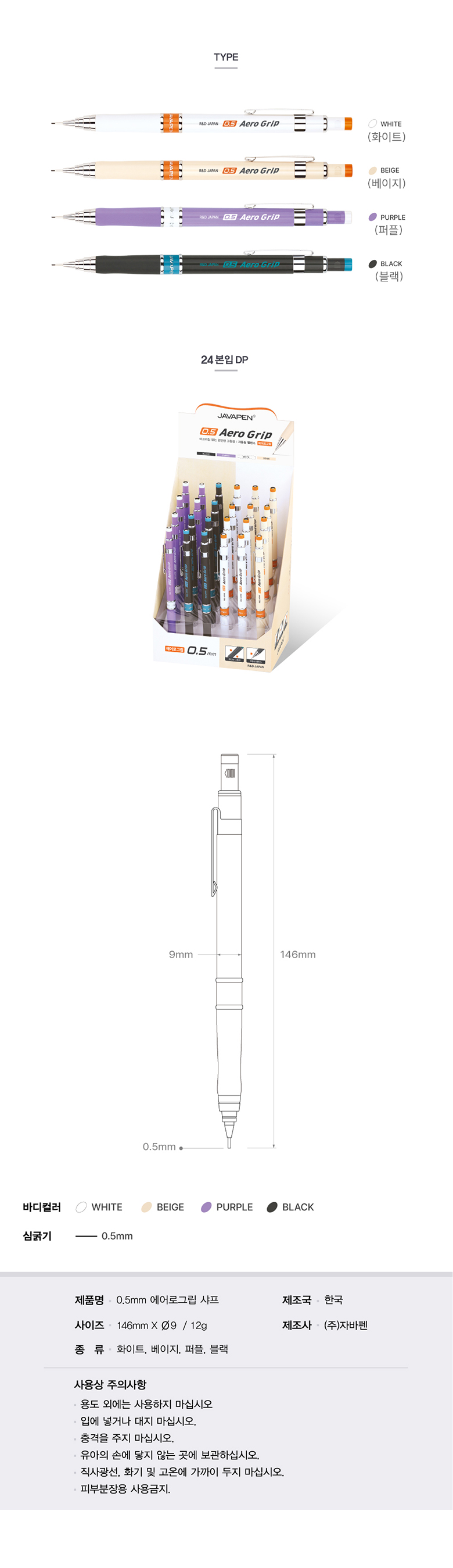 5000 자바 에어로그립 샤프 0.5mm 저중심 낱개 요약정보 및 구매